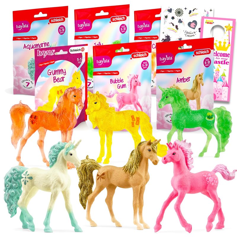- Schleich Unicorn Toy Playset for Girls - Bundle with 6 Schleich Unicorn Figurines Featuring Candy, Desserts, Treats More Plus Tattoos | Bulk Unicorn Figure Set for Kids.
