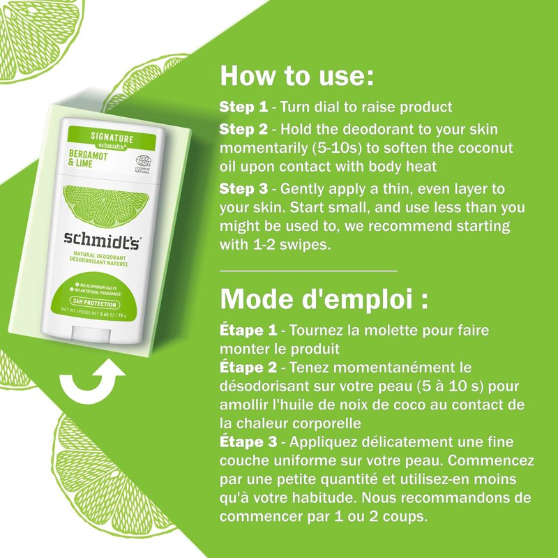 - Plant-Based Ingredients – Schmidt's deodorant without aluminum is formulated to be gentle on skin, using certified 100 percent natural origin ingredients such as odor fighting magnesium and essential oils