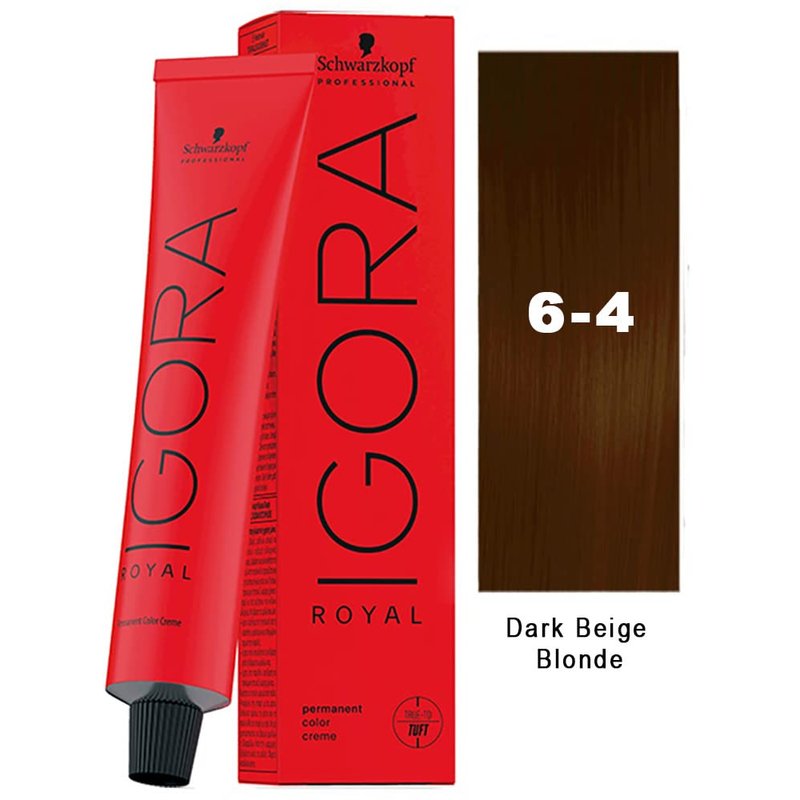 Schwarzkopf Igora Royal 6-4 Dark Blonde Beige Permanent Hair Color and M Hair Designs Tint Brush (Bundle 2 items)
