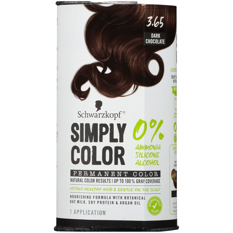 Schwarzkopf Simply Color Hair Color 3.65 Dark Chocolate Brown, 1 Application - Permanent Hair Dye for Healthy Looking Hair without Ammonia or Silicone, Dermatologist Tested, No PPD & PTD