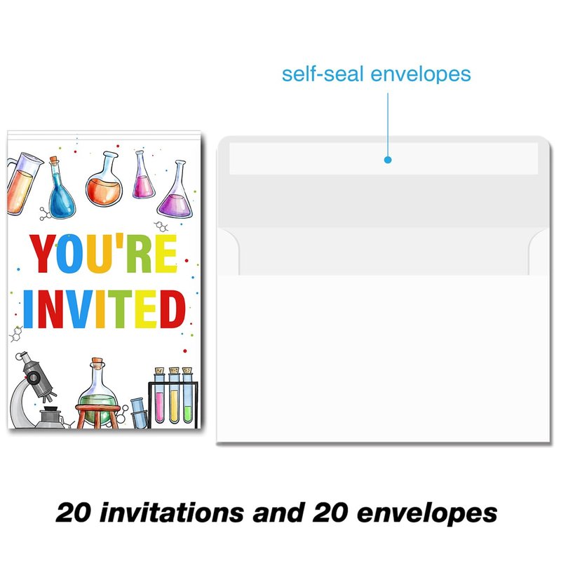 Science Birthday Invitations with Envelopes Set of 20 Science Lab Party Invites Fill in Blank