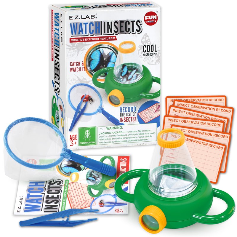 - [EVERYTHING KID SCIENCE NEED]- This bugs collection kit provide net catcher , tweezers and bug habitat for kids to catching , observe and record bugs. Great entomology science kit for boys girls age 3, 4, 5, 6, 7,8, 9, 10, 11, 12 .