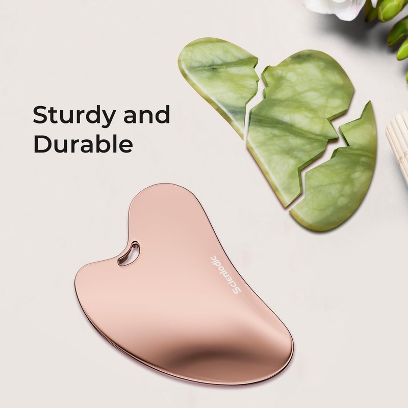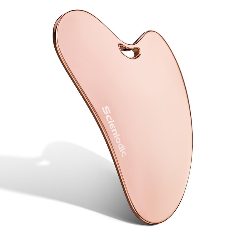 Scienlodic Stainless Steel Gua Sha Facial Tool, Metal Guasha Scraping Massage Tool for Face Jawline Body Legs, Skin Care Gift (Rose Gold)