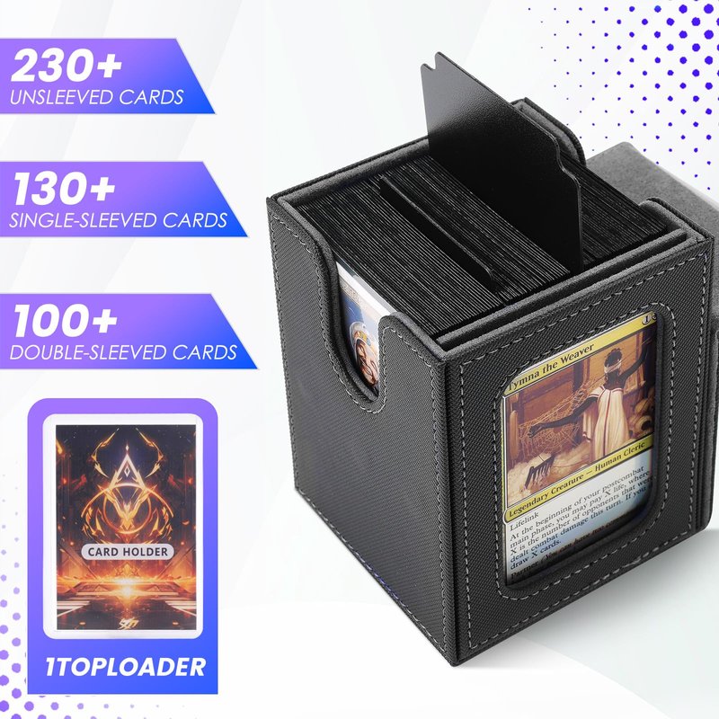- ๐ช๐ต๐ฎ๐ ๐ฌ๐ผ๐ ๐ช๐ถ๐น๐น ๐๐ฒ๐ - Every trading card box includes 2 card dividers and 1 top loader. With its lightweight and compact design, this card holder is the perfect companion for storing and protecting your beloved cards, whether you're an MTG player or an enthusiast of any other card game.