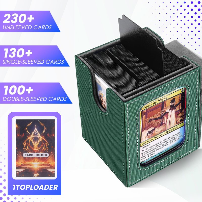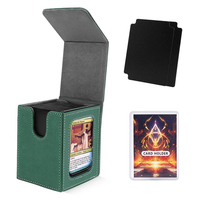 Scimi MTG Deck Box for Commander Display,Card Deck Box Fits 100 Double Sleeved Cards, Magic Commander TCG Card Leather Storage Box with 2 Dividers and 1 Toploader (Green)