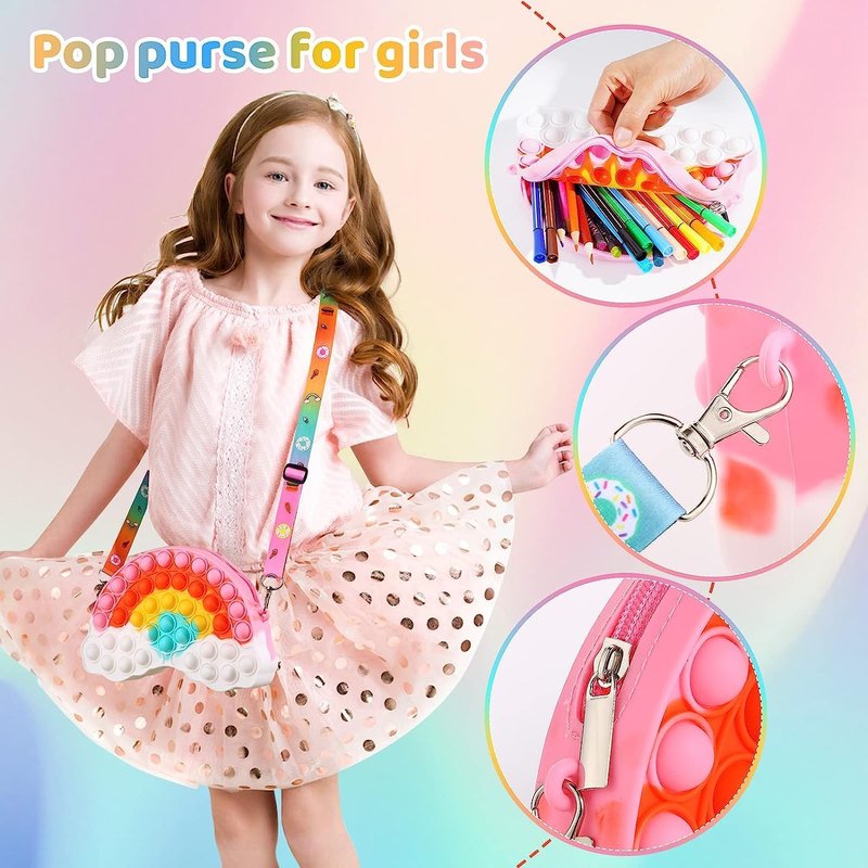 SCIONE Girls Toys Gifts Pop Shoulder Bag Fidget Toys , Christmas Gifts for Teens Kids Daughter Sister Her,Rainbow Purse Crossbody Bag for Goodie Bags Party Favor Toy , Party Birthday Gifts Supplies Birthday Gifts Party Goodie Bag Stuffers,Cute Trendy Stuff