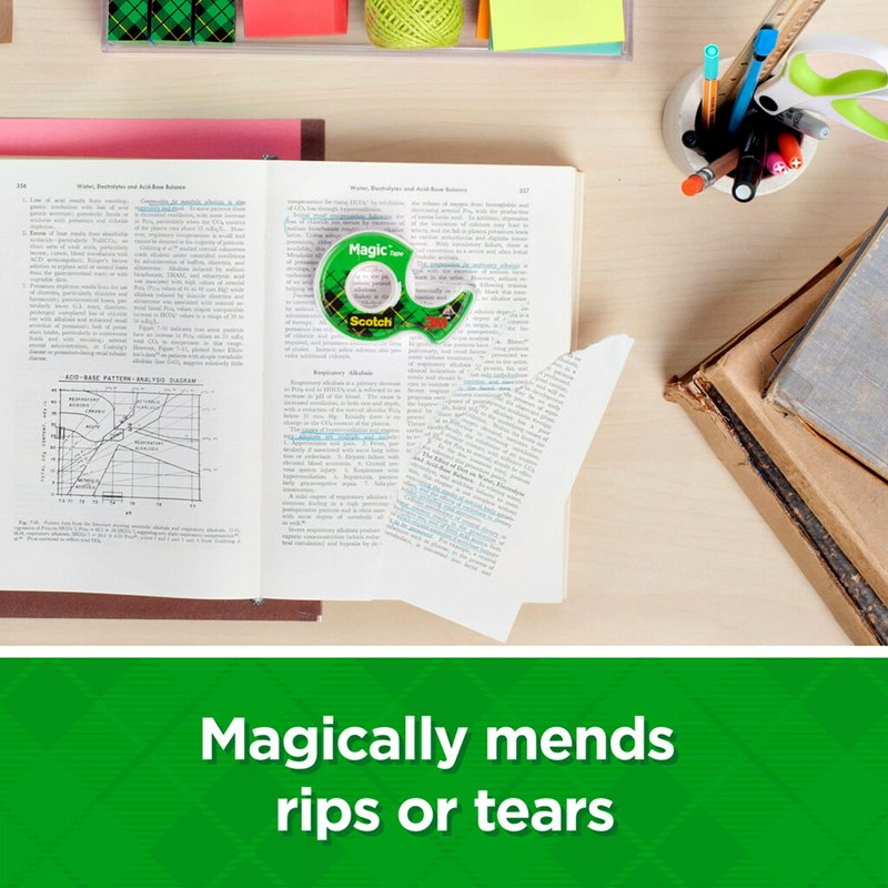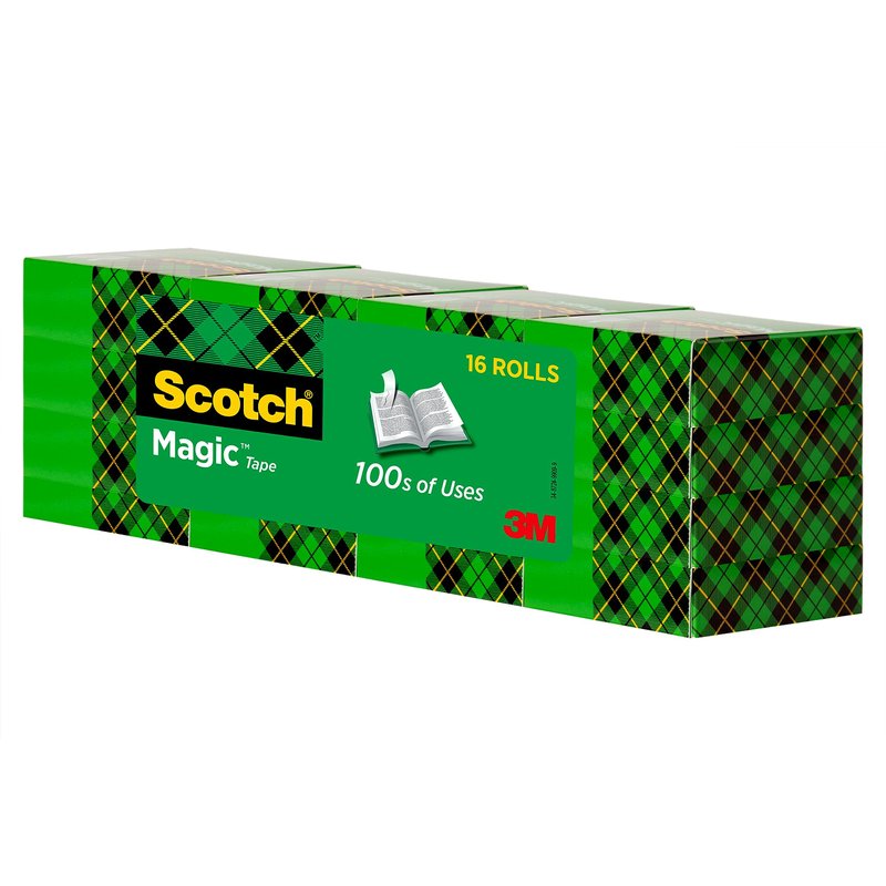 - INVISIBLE TAPE: 16 rolls of Scotch Magic Tape mends rips and tears acquired during the holidays securely, permanently and invisibly
