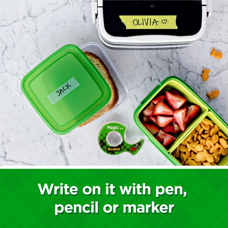 - CREATE LABELS – Scotch Magic Tape is great for labeling. Write on tape with pencil or marker for quick personalization