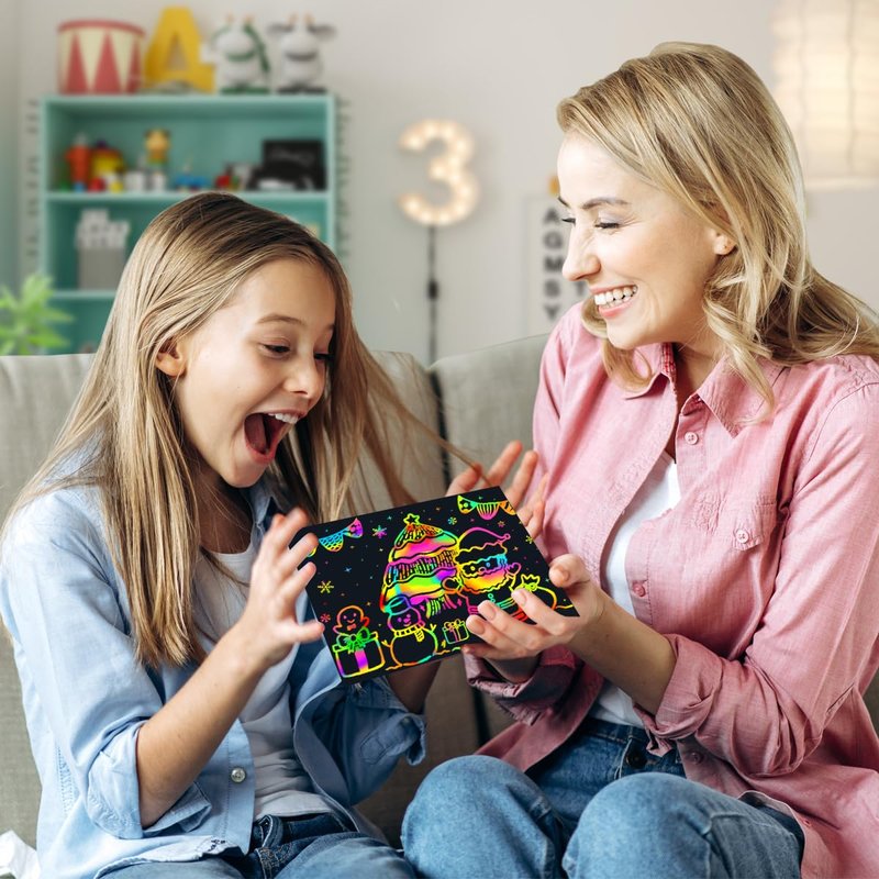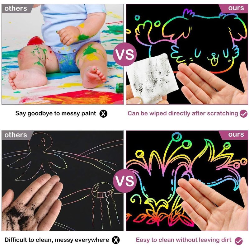 🎁High-Quality & Non-Toxic - This toys arts and crafts made with super thick and high-quality material will not rip easily! - Based on a new formulation with non-toxic, water-based ink printed on super thick and high-quality card, safe small scratch rainbow art for kids to use. 🎁Give an alternative to screen time! - Scratched art paper set can help improve children's creativity, imagination and hands-on ability, by providing children with fun ways to make them enjoy themselves and express themselves creatively, and help them stay away from electronic products. -The children's art project has many sheets for prolonged play time -- and each sheet is durable allowing for detailed, expressive drawing possibilities.-Little artists will find enough space to explore their creative side with this sketch art notes! 🎁Great interaction and cooperation between parents and kids! - Scratch off coloring paper is a wonderful activity to promote bonding time between children and their moms, dads, grandparents and other adults. - Explore the sample pack of scratch note pads included for fun quality time, while simultaneously helping youngsters learn and grow 🎁Best travel companion for self-creation- Unleash child’s creativity and sharpen your child’s fine motor skills; It's a very good way to train kids hands-in skills, intelligence development with our scratch it off art paper.🎁Kids scratch doodle art set- Scratch pads art allows children to doodle, draw, play games, and practice letters with their parents to enjoy fun time while helping them learn and grow. - This rainbow scratch set is also suitable for kindergarten and preschool art education. Teachers can hang children's fun crafts creations on the wall to display their masterpieces, encourage children to learn more new things, and also suitable for family education.🎁Package including:- 50 x Black Scratch Paper- 5 x Wooden Stylus