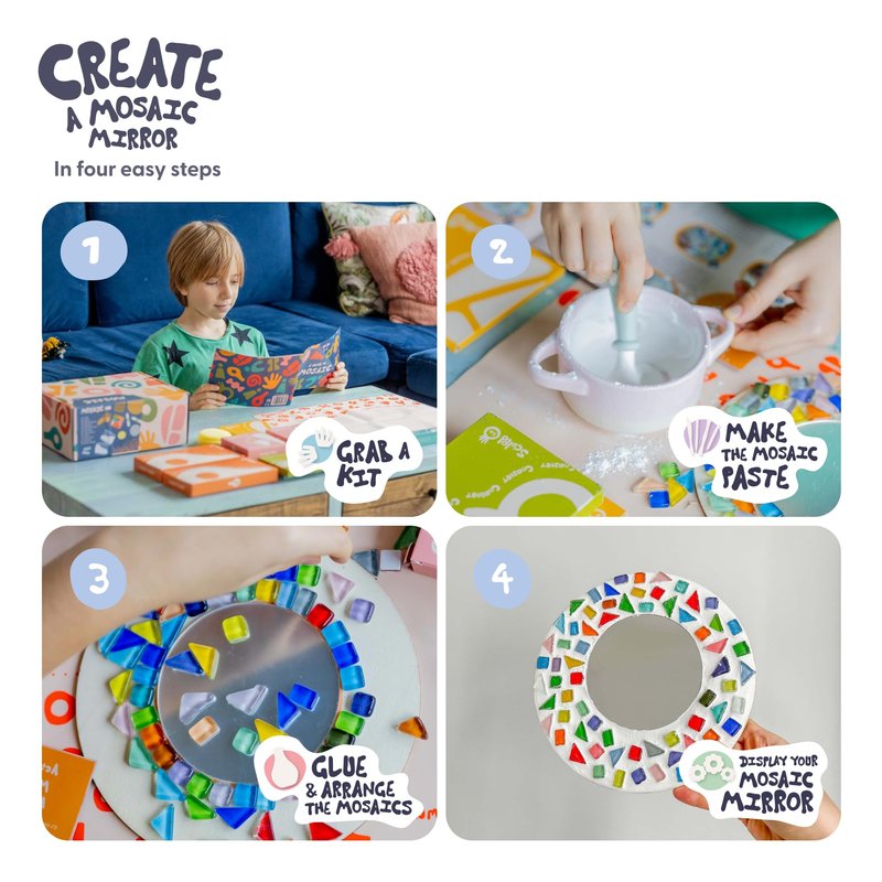 - KIDS MINI MOSAIC KIT 🎨 - Let your little ones unleash their creativity with this awesome mosaic kit! They’ll learn how to create a stunning mosaic mirror that will become the centrepiece of their bedroom!