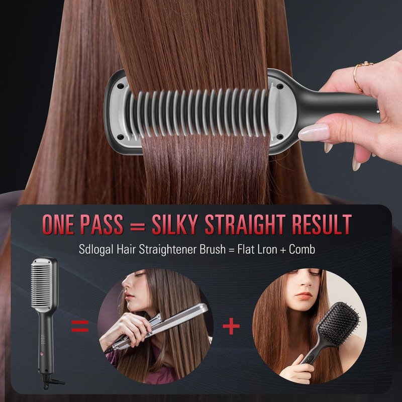 sdlogal Hair Straightener Brush – Hair Straightening Iron with Built-in Comb, 20s Fast Heating & 5 Temp Settings & Anti-Scald, Perfect for Professional Salon at Home(Beige)