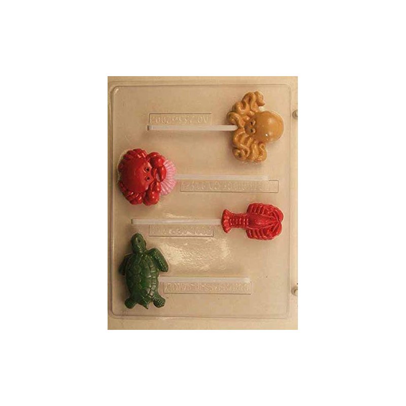 - Sea Creatures (sea turtle, octopus, lobster, crab), Mold Type: Lollipop, Cavities: 4 Average Size Cavity Height: 2 1/4"Width: 2 7/8"Thickness: 5/8"
