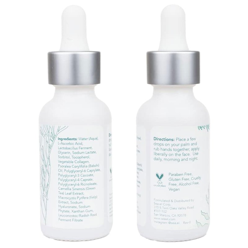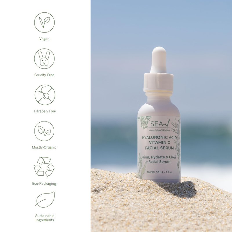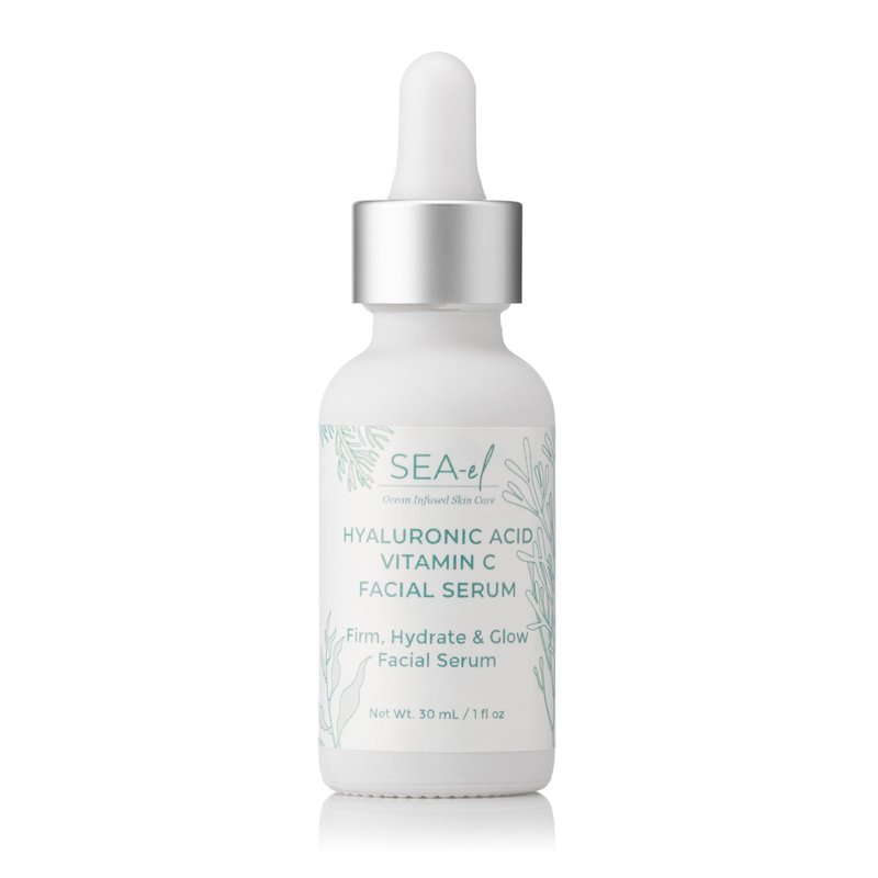 Sea-el Hyaluronic Acid & Vitamin C Facial Serum Drops Firming Hydration & Glow Anti Aging Face Moisturizer - Daily Wrinkle Diminishing Skin Care for Women & Men, Vegan - 1 Fl Oz
