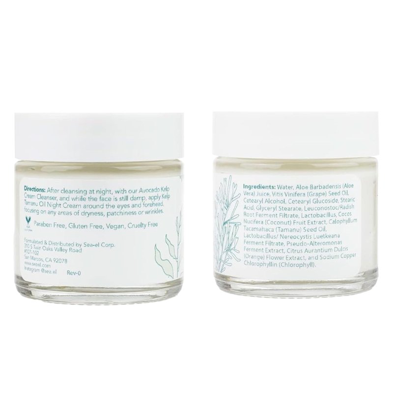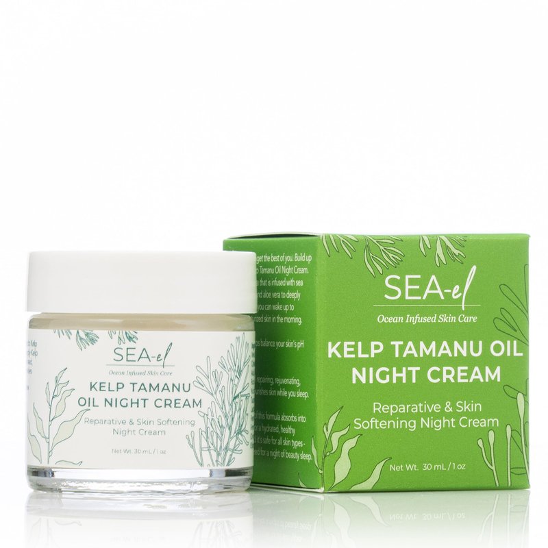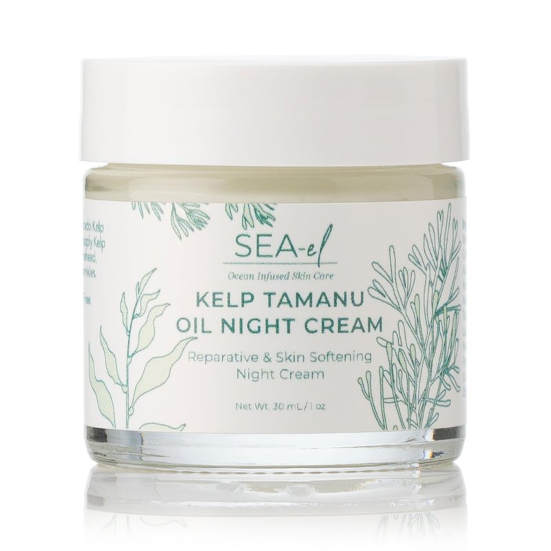 Sea-El Kelp Tamanu Oil Night Cream Hydrating Face Moisturizer Reparative Skin Softening Skincare - Nighttime Anti Aging Facial Lotion for Women & Men - 1 Oz