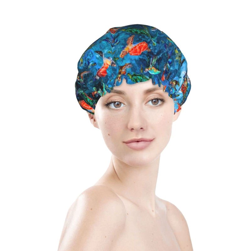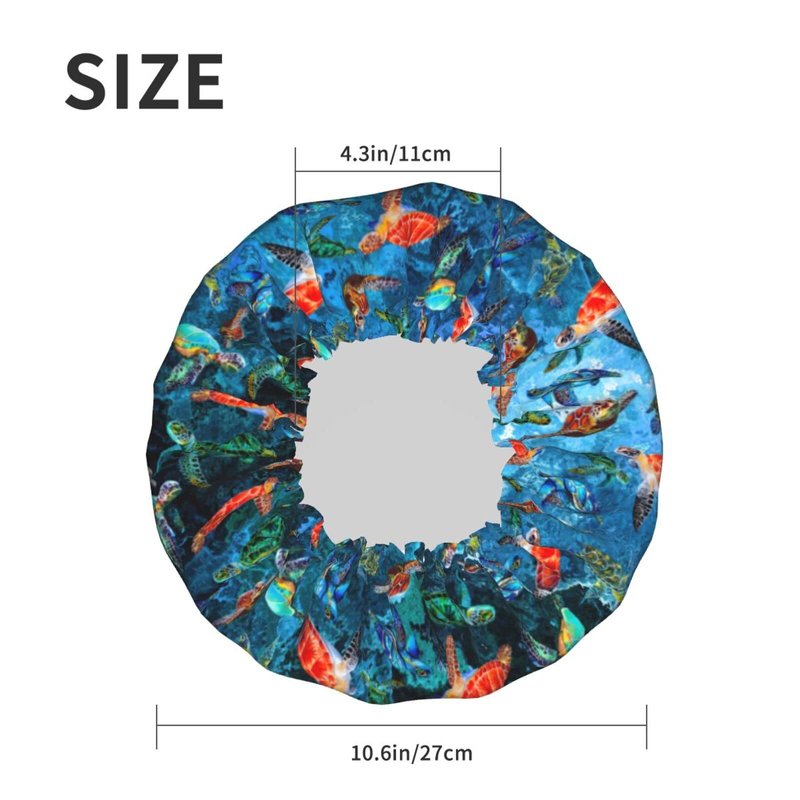 Sea Turtle Shower Cap For Women Adjustable Double Waterproof Layers Bathing Bath Cap Hair Protection Reusable Ladies Spa Salon Shower Hat
