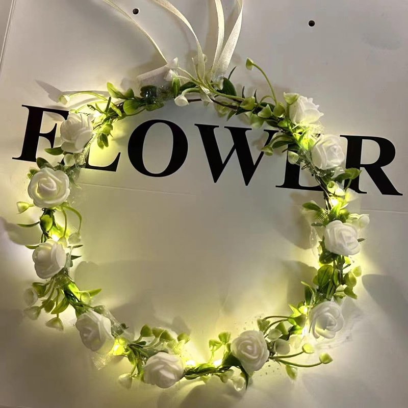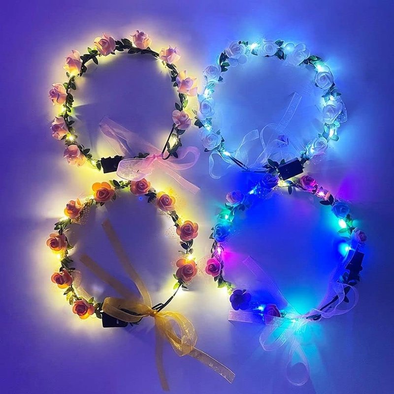 Seadiquiet White Vintage LED Flower Crown, Glow Flower Wreath Headbands Luminous Led Bridal Headpiece Wedding Headdress Hair Hoop Party Hair Accessories