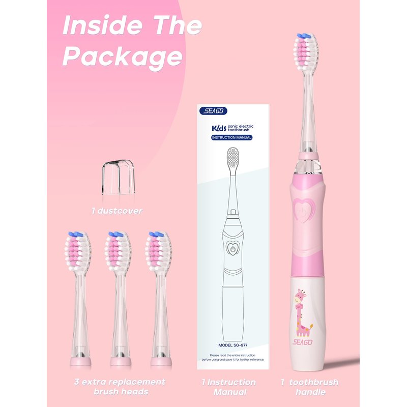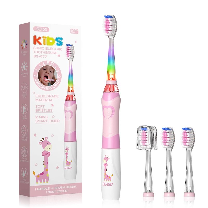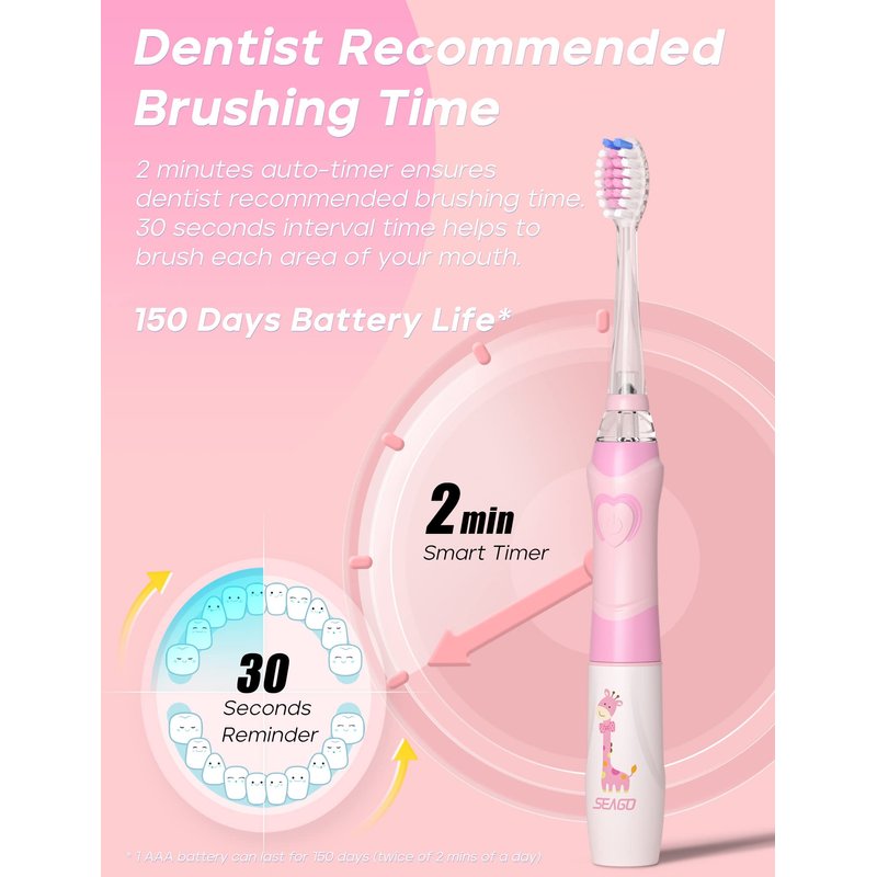 SEAGO Kids Electric Toothbrushes Sonic Toothbrush, Soft Battery Powered Tooth Brush with Smart Timer,Waterproof Replaceable Deep Clean for Kids(Age of 3+),Child Electric Toothbrush (977Pink)…