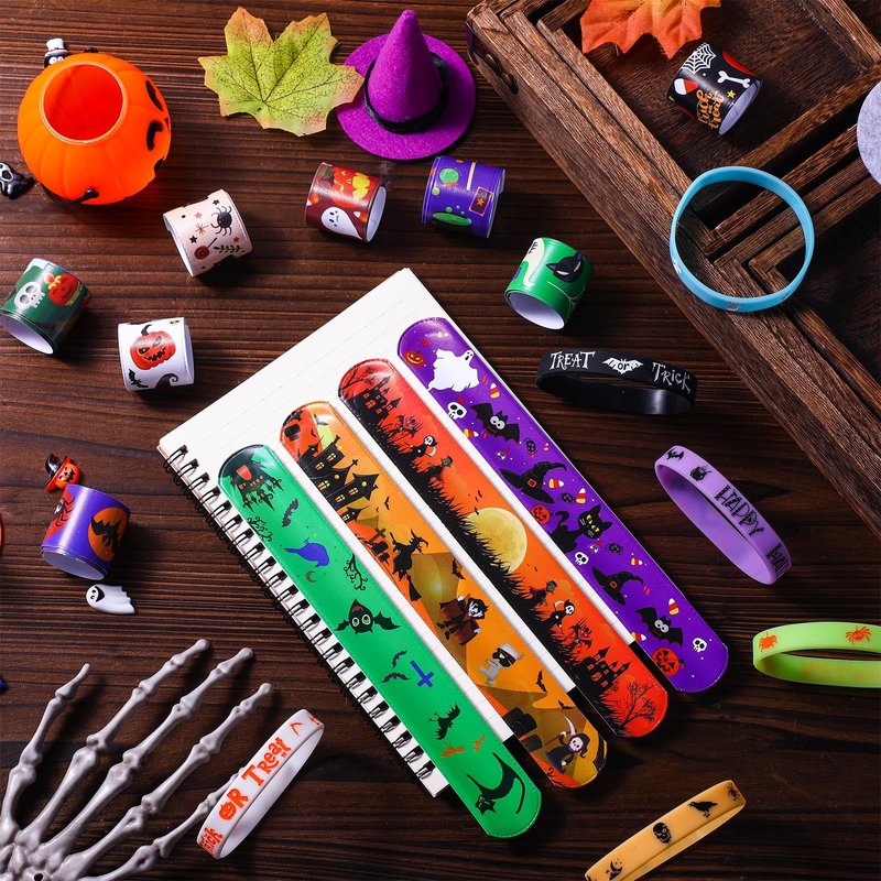 - Halloween Themes: Halloween silicone bracelets and slap bracelets boast abundant Halloween patterns including pumpkins, spiders, ghosts, bats and more; These spooky designs are certain to captivate attention and enhance the Halloween spirit