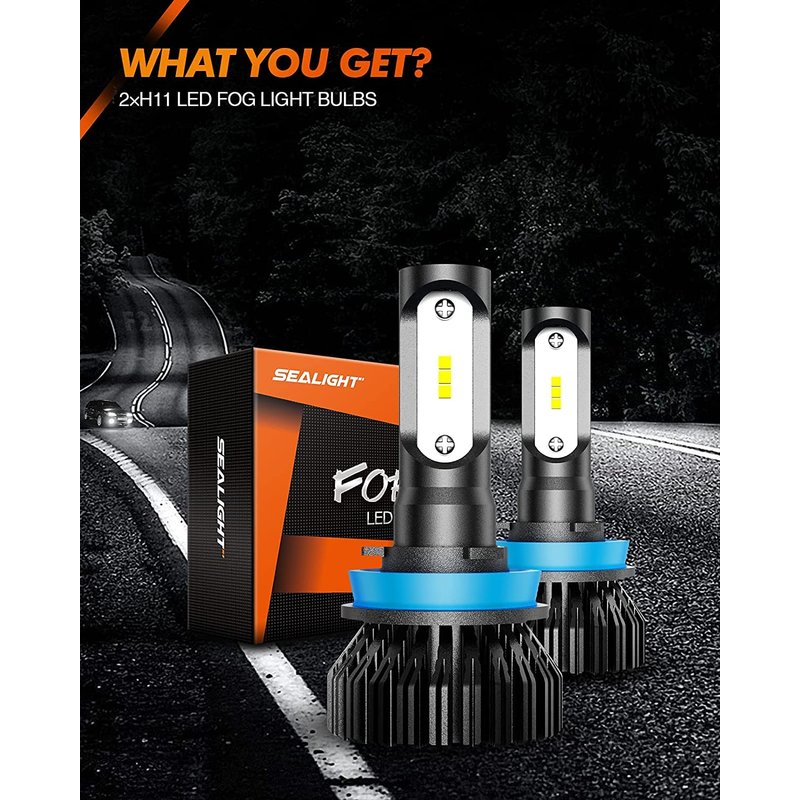 SEALIGHT H11 H8 H9 LED Bulbs LED Fog Light Bulbs, 6000K Xenon White 400% Super Brightness H11 LED Light Bulb Kit for Car, Lighting Range over 300m, Play and Plug, Pack of 2