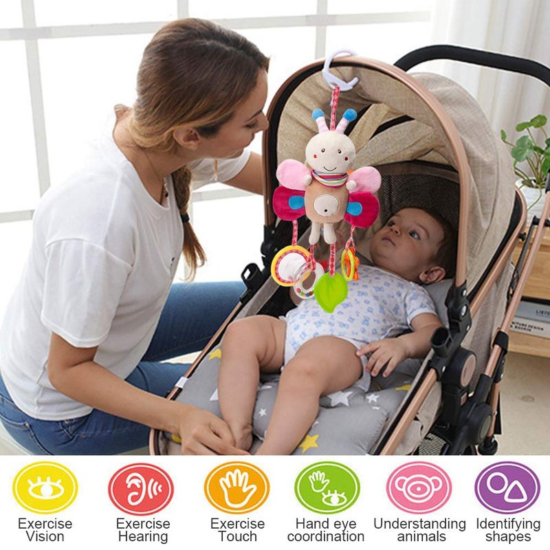 - Interactive Hanging Baby Toys: Our 4-pack hanging baby toys feature vibrant colors and soft plush designs, perfect for attaching to cribs, strollers, baby gyms and play mat. These developmental toys stimulate hand-eye coordination and engage infants during playtime.