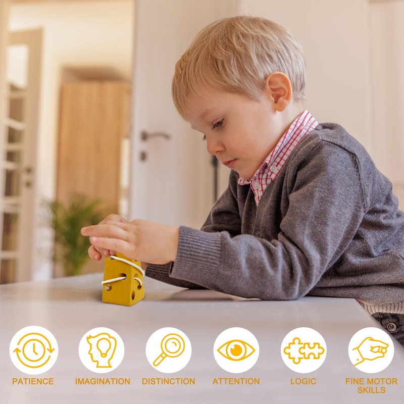 - Premium Quality and Safety: Made from natural wood, this lacing toy is safe for young children with smooth edges and securely attached strings.