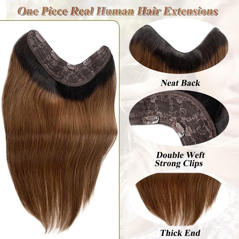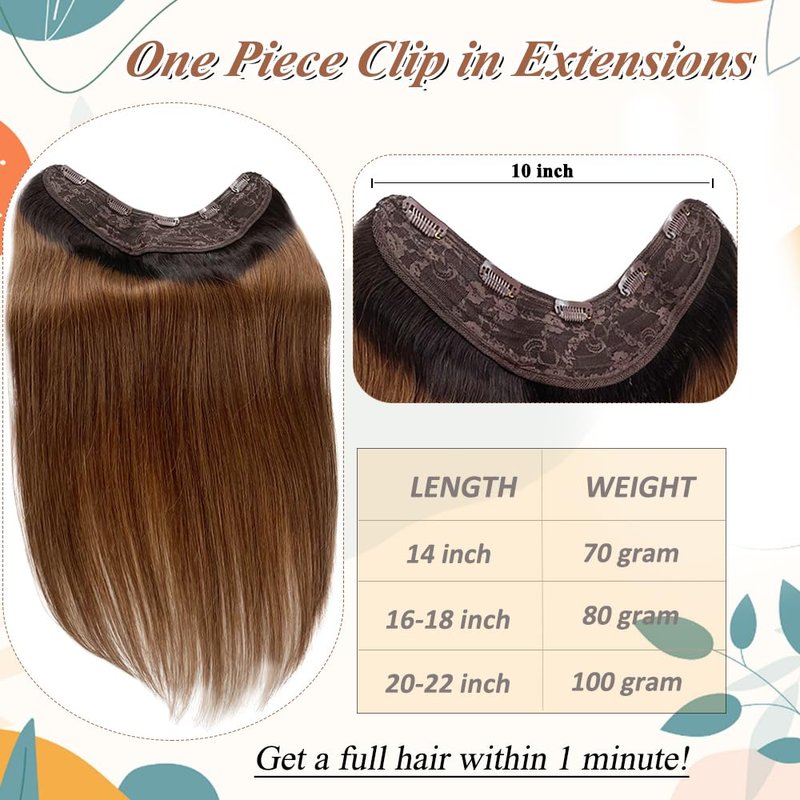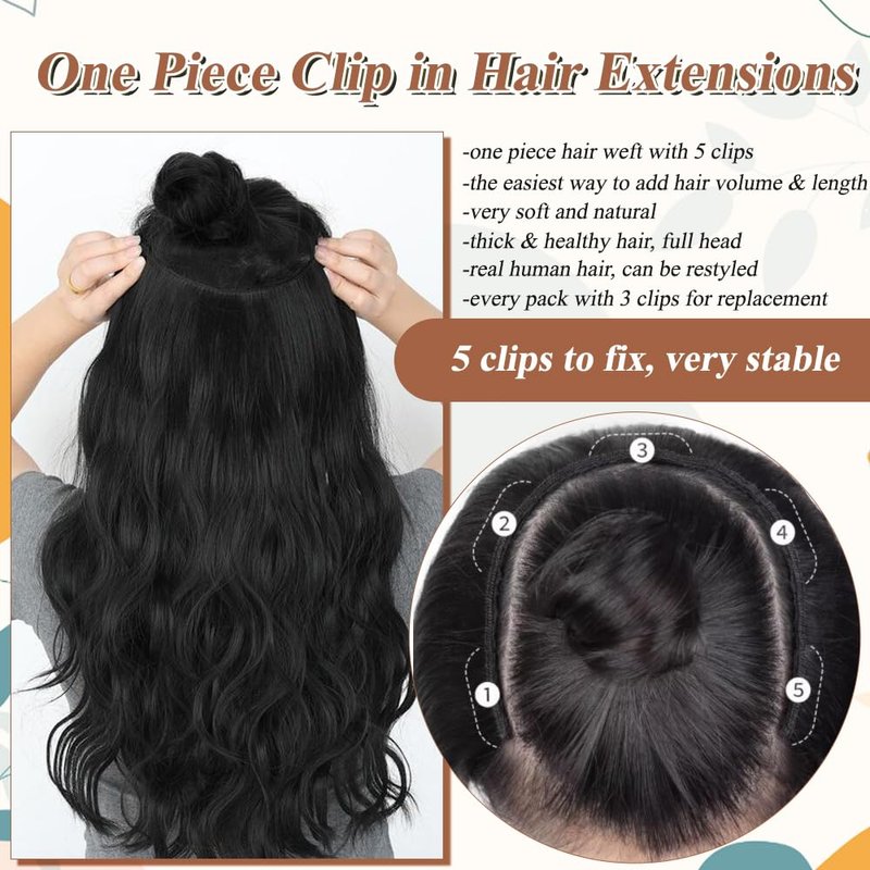 - 【Innovative Product - One Piece Clip in Hair Extensions】New type one piece clip in extensions is the easiest way to add hair volume, just need to clip the 5 clips, you will get a full hair within 1 minute! Compare with 7pcs 16 clips and 5pcs 12 clips hair extensions, 1 piece hair extensions is only 1pc weft with 5 clips, less burden to your scalp, but the same wearing effect. And 1pc clip ins is easier to install, beginners could do it perfectly. Every pack with THREE clips for REPLACEMENT.