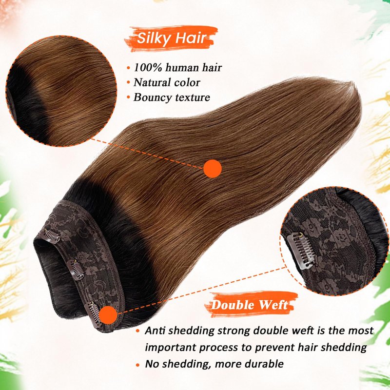 Innovative one piece clip in hair extensions is the easiest way to add hair volume, there is only one piece hair weft with 5 clips, even you are a hair extensions beginner, you could get a full hair within 1 minute! Compare with 7pcs/5pcs clip hair extensions or wire hair extensions, 1 piece hair extensions is less burden to your scalp, but the same wearing effect. Highly recommend to have a try, you will love it!