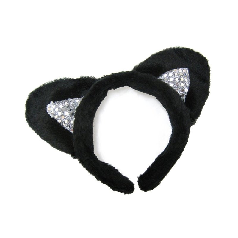- Headpiece - black soft plush cat ears with silver sequin lining