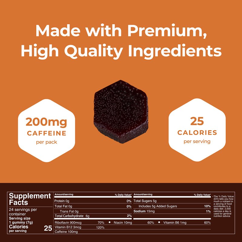 - ✅ FAST-ACTING CAFFEINE: 200 mg of caffeine per pack, equivalent to two cups of coffee, for a quick and powerful energy boost.