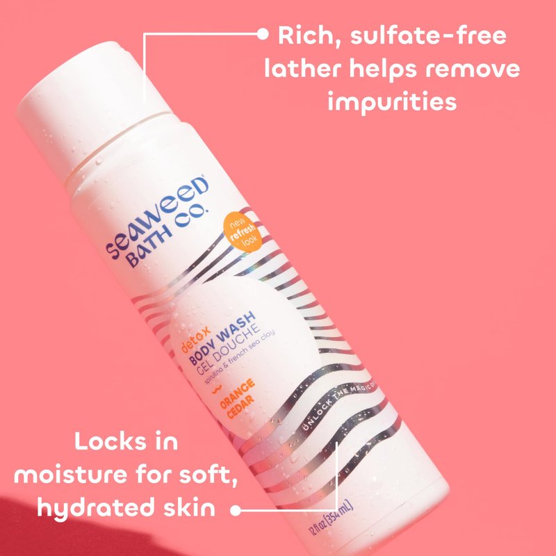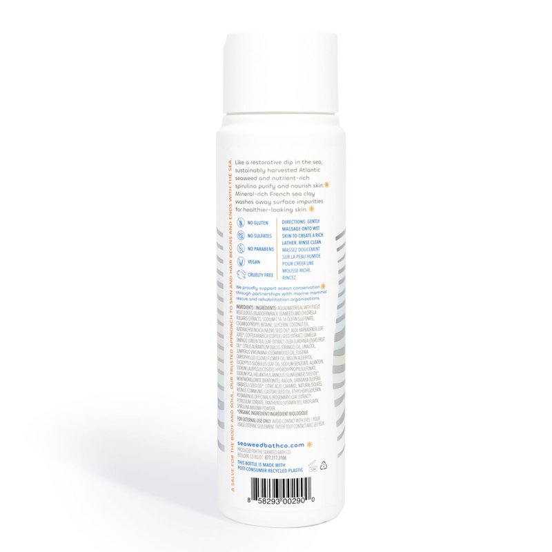 Unlock the magic of the sea with Seaweed Bath Co. Detox Body Wash. This body wash gently cleanses with sustainably harvested Atlantic seaweed and nourishing spirulina, while mineral-rich French sea clay helps to purify and wash away toxins and impurities for refreshed, healthier-looking skin. Inspired by the idea that nature already knows, we started with a centuries old remedy - seaweed baths - while on a personal journey to find a better troubled skin solution. Since then, Seaweed Bath Co. has continued to use sustainable practices to unlock the nourishing and restorative gifts of the ocean, harnessing its benefits in every product we make. We proudly support ocean conservation through partnerships with marine mammal rescue and rehabilitation organizations.