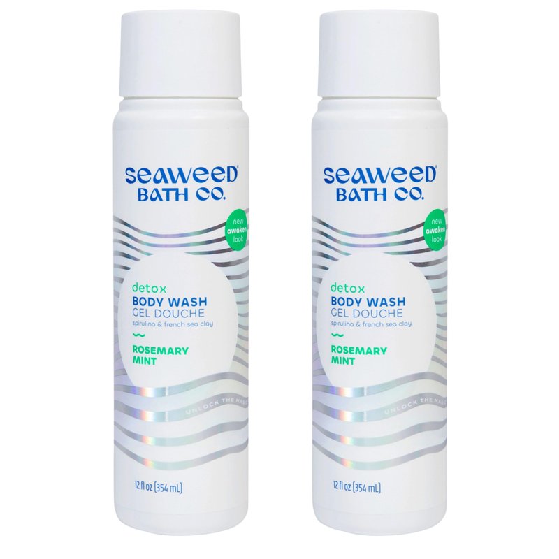 Seaweed Bath Co. Detox Body Wash, Rosemary Mint Scent, 12 Ounce (Pack of 2), Shower Gel for Men & Women, Vegan, Paraben Free, Sulfate Free, Cruelty Free