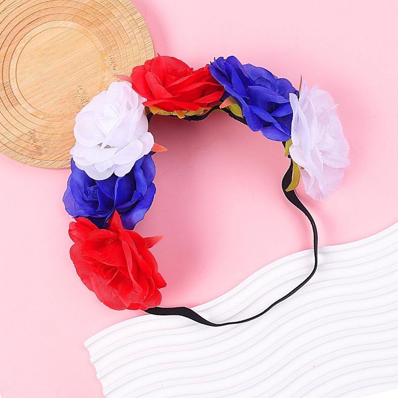 SeBneny Flower Headband Red Blue White Elastic Ribbon 4th of July Hairband for Women Rose patriotic headband National Memorial Day para niña Hair Hoop Floral Crown for Party Supplies 1PCS