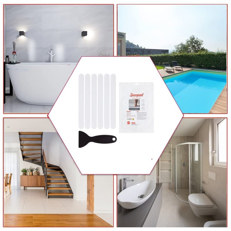 - ★The package comprises 36 pieces (0.8”x7.9”) of clear stickers alongside 1 high-quality silicone scraper. Ideally, the 36 stickers can occupy most of the surface of bathtub thereby reducing the risk of accidental slips. On top of that, you can even use these stickers on the stairs to make them much more secure.