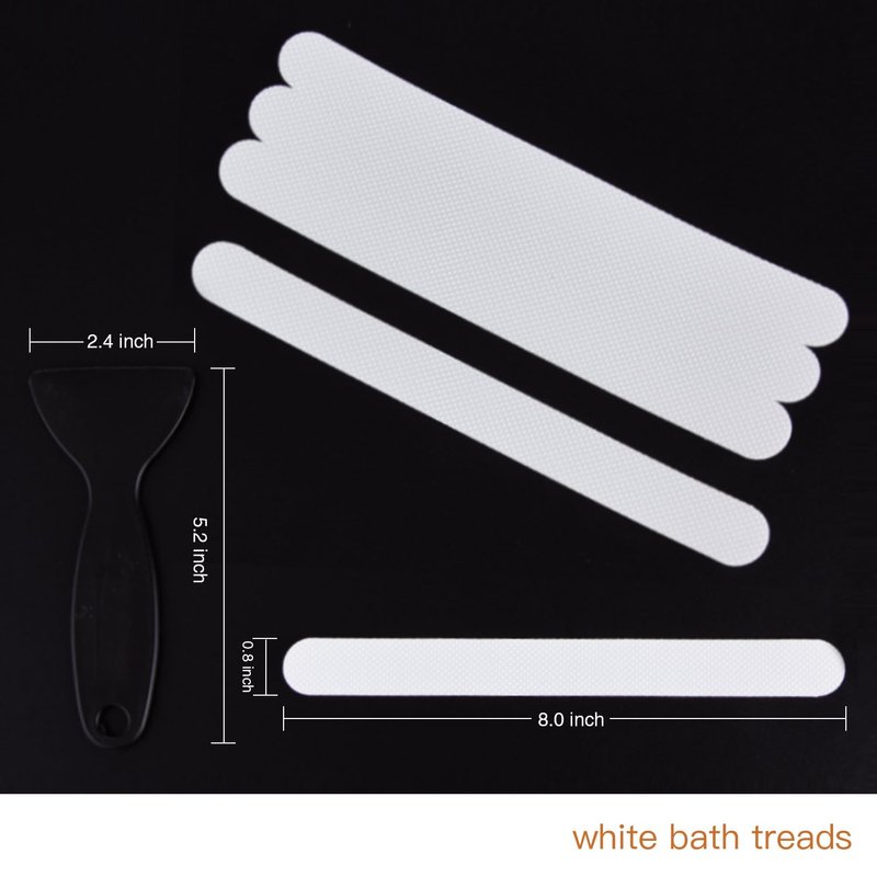 - ★The package comprises 36 pieces (0.8”x7.9”) of clear stickers alongside 1 high-quality silicone scraper. Ideally, the 36 stickers can occupy most of the surface of bathtub thereby reducing the risk of accidental slips. On top of that, you can even use these stickers on the stairs to make them much more secure.