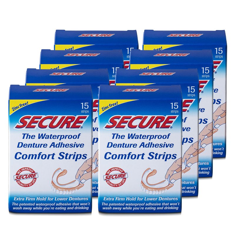 - ZINC-FREE FORMULA & FSA/HSA-APPROVED – Secure's denture adhesive strips contain no added flavors or colors; only clean, high-quality ingredients are used. A mess-free and approved choice for denture care.
