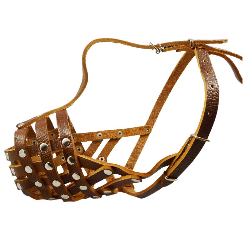Secure Leather Mesh Dog Basket Dog Muzzle #11 Brown - Pit Bull, Amstaff (Circumference 12", Snout Length 3.5")