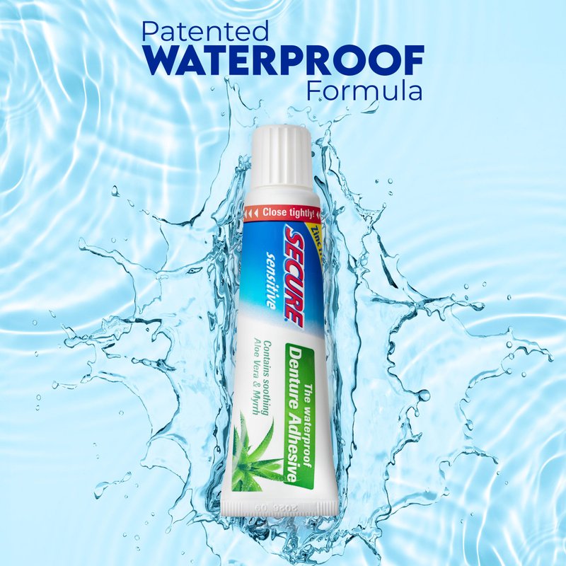 - A NEW SECURE FEELING - Best for new denture wearers and those with sensitive gums, the only zinc-free, waterproof denture adhesive that promises up to 12 hours of holding power. Discover a completely new and natural denture feeling. No more slipping, sliding or embarrassing moments.