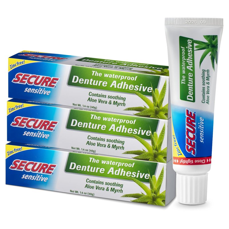 Secure Sensitive Denture Adhesive – 12-Hour Max Hold – Waterproof Seal – Zinc Free – Food Grade Ingredients – fsa hsa Approved – 1.4 oz (3 Pack)
