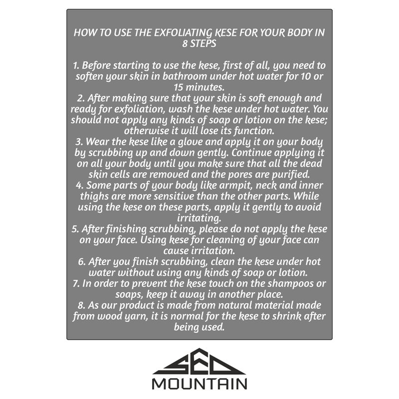 - Healthy And Smooth Skins - Sed Mountain Turkish Hammam is one of the best peeling methods with the scrub, which is suitable for your skin. During the scrub, you can get rid of the dead cells on your skin and have healthier skin. The pouch, which provides deep cleaning of the pores, helps the skin to breathe and helps you get rid of various skin problems.