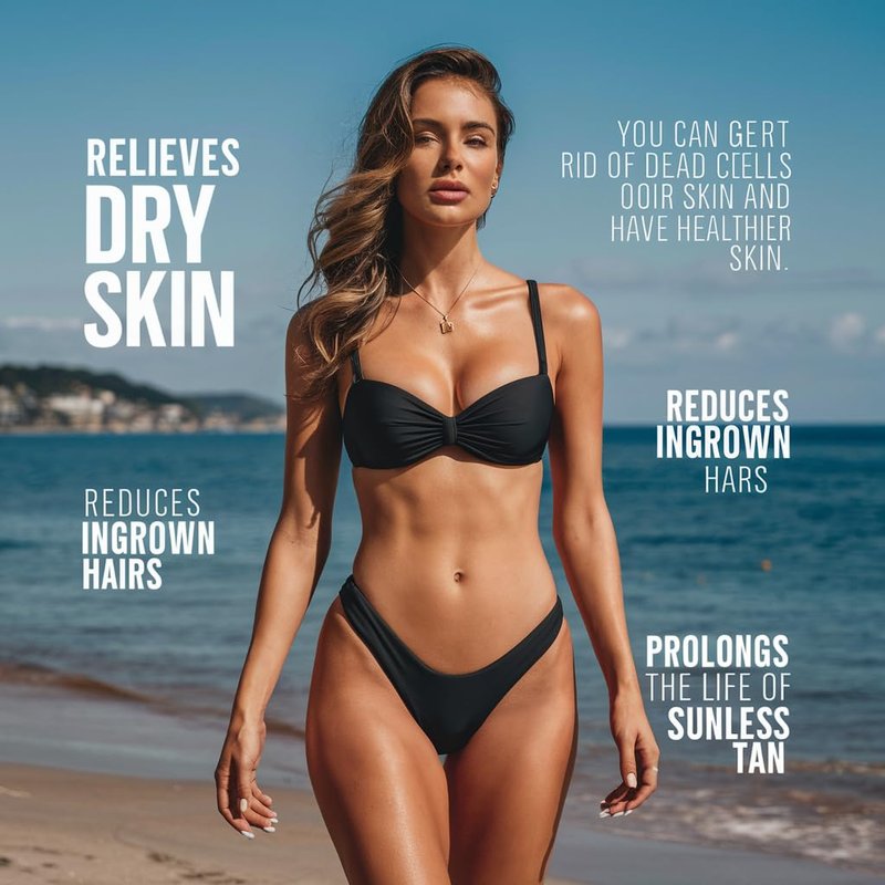 - Quick Conclusion – Using only water, our Mitts may help clear skin conditions like keratosis, pilaris or chicken skin, ingrown hair, and cellulite. Our body-exfoliating scrub mitts provide full to visibly lift away dead skin. You can also use it to prep your skin before applying the tanner.