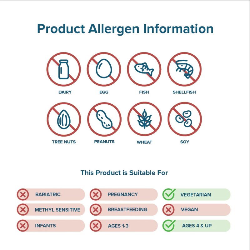 - Allergen-Friendly Multivitamin Support: This multivitamin supplement is free of GMOs, gluten, eggs, fish, shellfish, tree nuts, peanuts, wheat, sesame, and soy