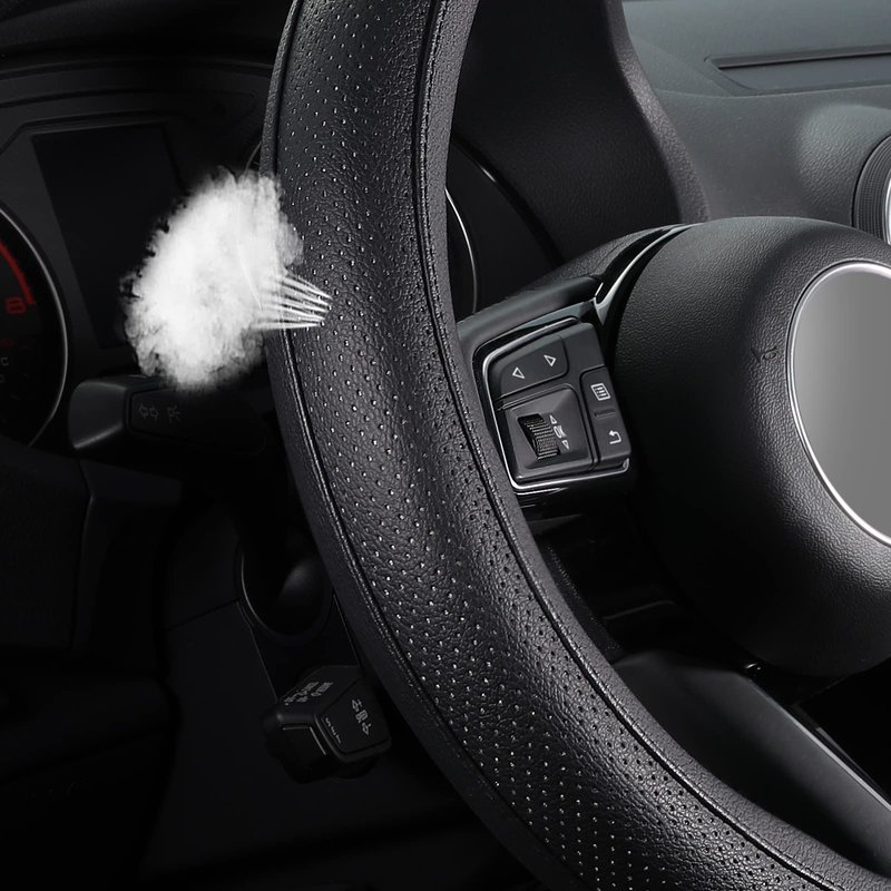 - NO MORE STICKY: The auto steering wheel cover is super comfy to hold, the pores on it are breathable and they absorb the hand-sweat that the summer heat causes, allowing you to grip the steering wheel firmly.