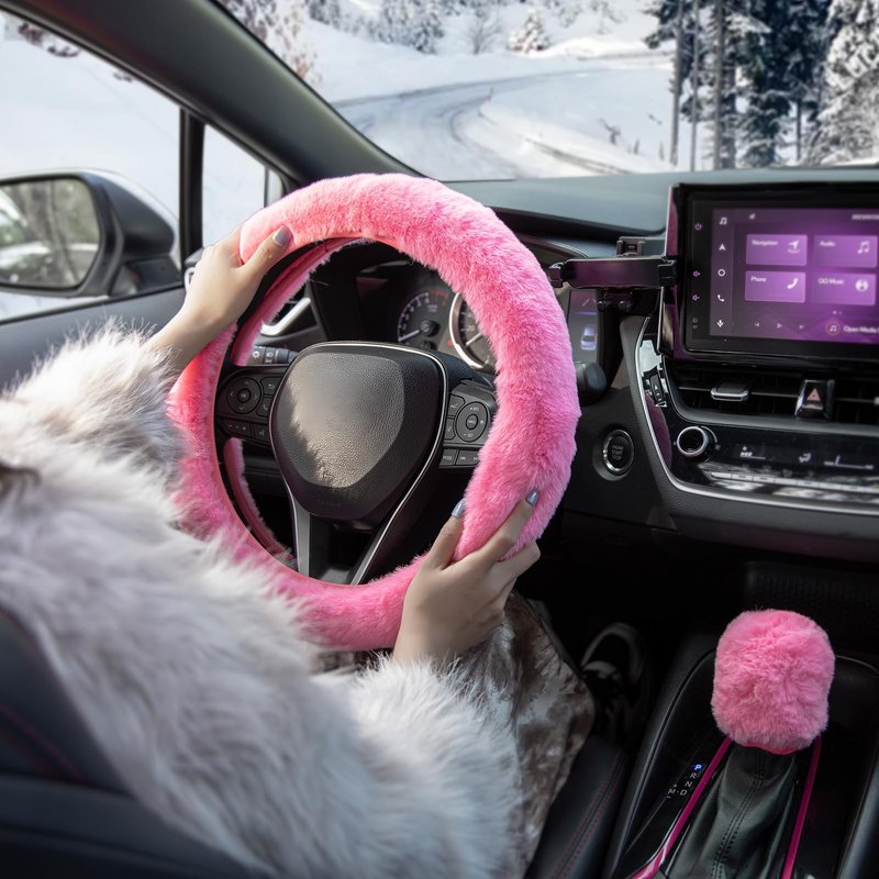 - SOFT AND COMFY: Created with premium pink-dyed high-grade plush, this furry steering wheel cover offers both style and comfort. Its delicate texture ensures your hands stay soft and cozy, even during cold winter drives. Experience a luxurious touch while enhancing your driving experience.