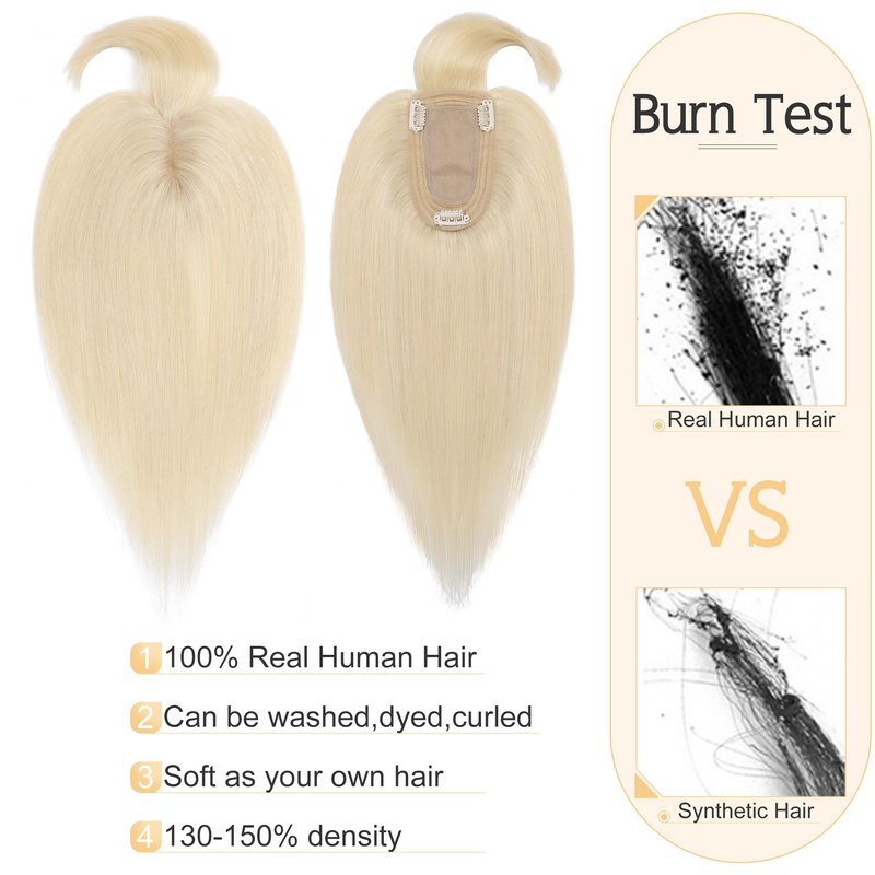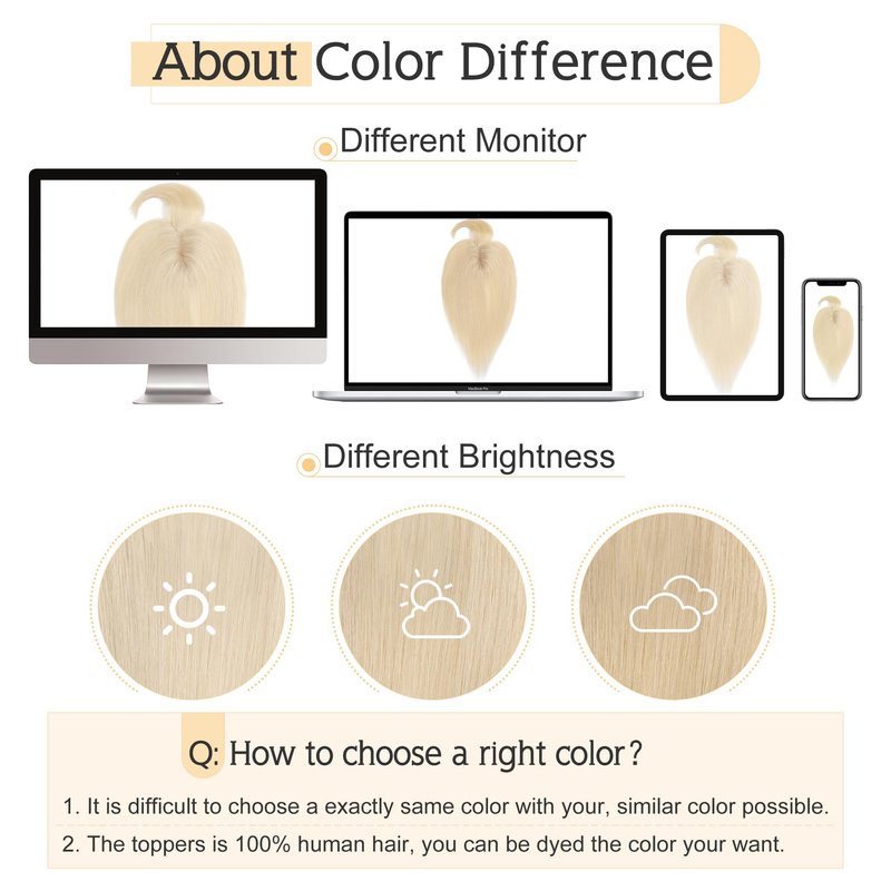 - ♛About color difference♛ Color might be slightly different from the picture showed considering light and different monitor. But since it’s real human hair, the topper can be dyed to the exact color you want if needed.