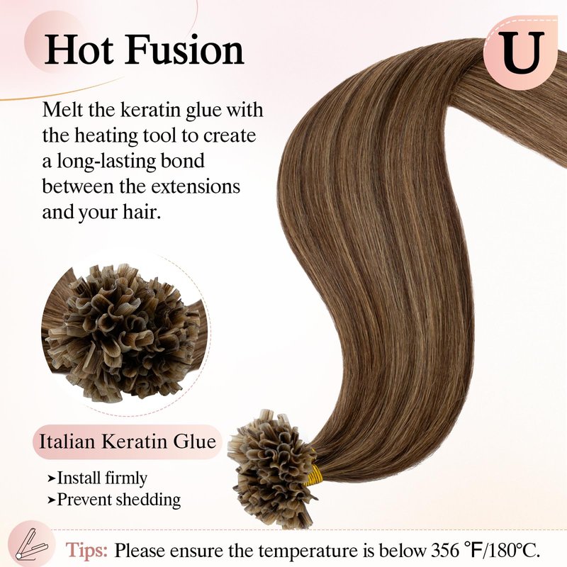 - 【Hot Fusion - Utip】SEGOHAIR Keratin Tip extensions are installed using a heating element which safely melts the Keratin U-tips onto your own hair. This method delivers naturally looking hair, just like your own hair would.Installation by professional hairstylist is recommended.
