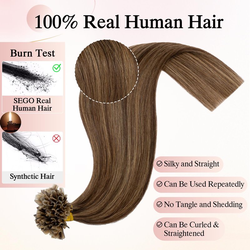 - 【Human Hair】SEGOHAIR U Tip Hair Extensions are made from high-quality human hair, ensuring their authenticity and seamless integration with your natural hair. The hair is tangle-free, does not shed, and is free of split ends, ensuring a smooth and seamless hairstyle.
