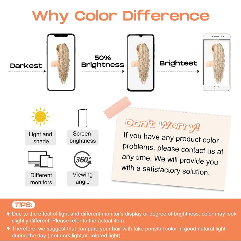 - 💖Kind Tips - The hair colors of the ponytail extension may be slightly different based on the hair fiber or style of the hair extension ponytail you select. Each color swatch or photo shown of the ponytail may vary due to different electronic devices' screens as well as production batches. Thank you for your understanding!
