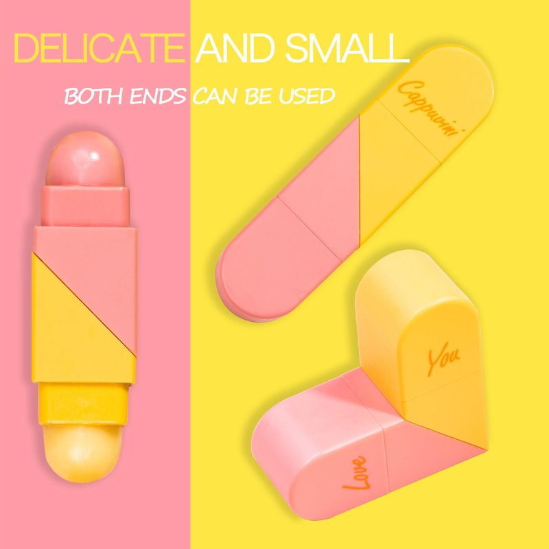 - 【Two Usages and Tastes】 The pink side is suitable for daily use to keep the lips moisturized and hydrated with a peachy flavor. The yellow side is used for dry, chapped lips with a honey-flavored taste.