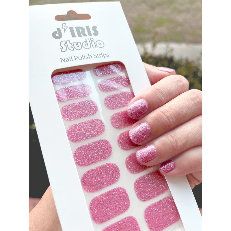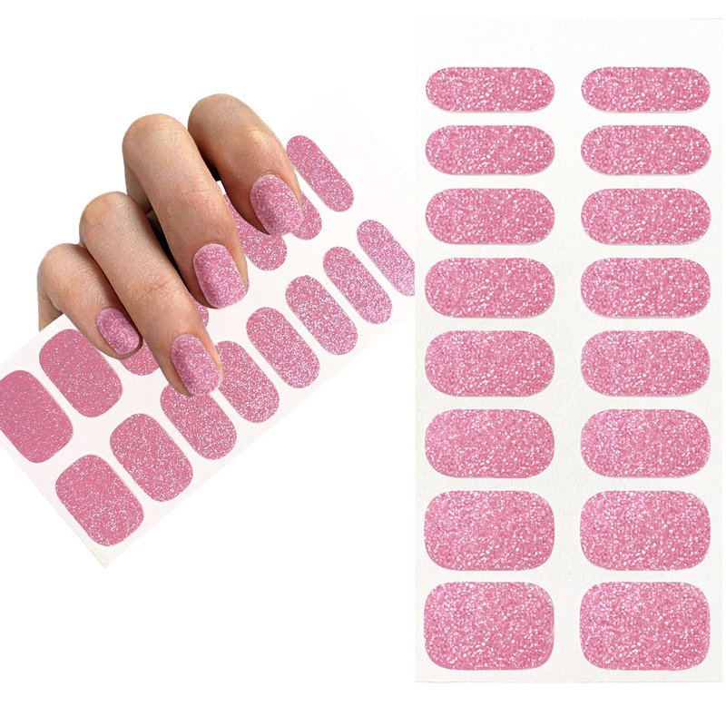 Self-Adhesive Glitter Shiny Pink Full Nail Wraps Stickers | Brighter, Thicker, Tougher Nail Polish Strips for Women Teens and Girls | DIY Nail Art Decoration (1 Sheet-16 Strips)
