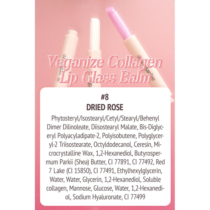SELF BEAUTY Veganize Collagen Lip Glass Balm | Hydrating Lip Balm in 9 Vibrant Colors | Moisturizing Lip Care Infused with Collagen Jelly Magic | No Animal Trial Lip Balm 0.06 oz (#8 Dried Rose)